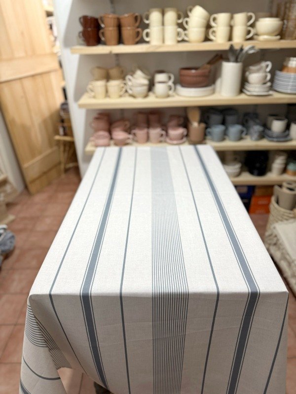 Mantel antimanchas modelo rayas azules. Tela antimanchas e impermeable,100% poliéster.